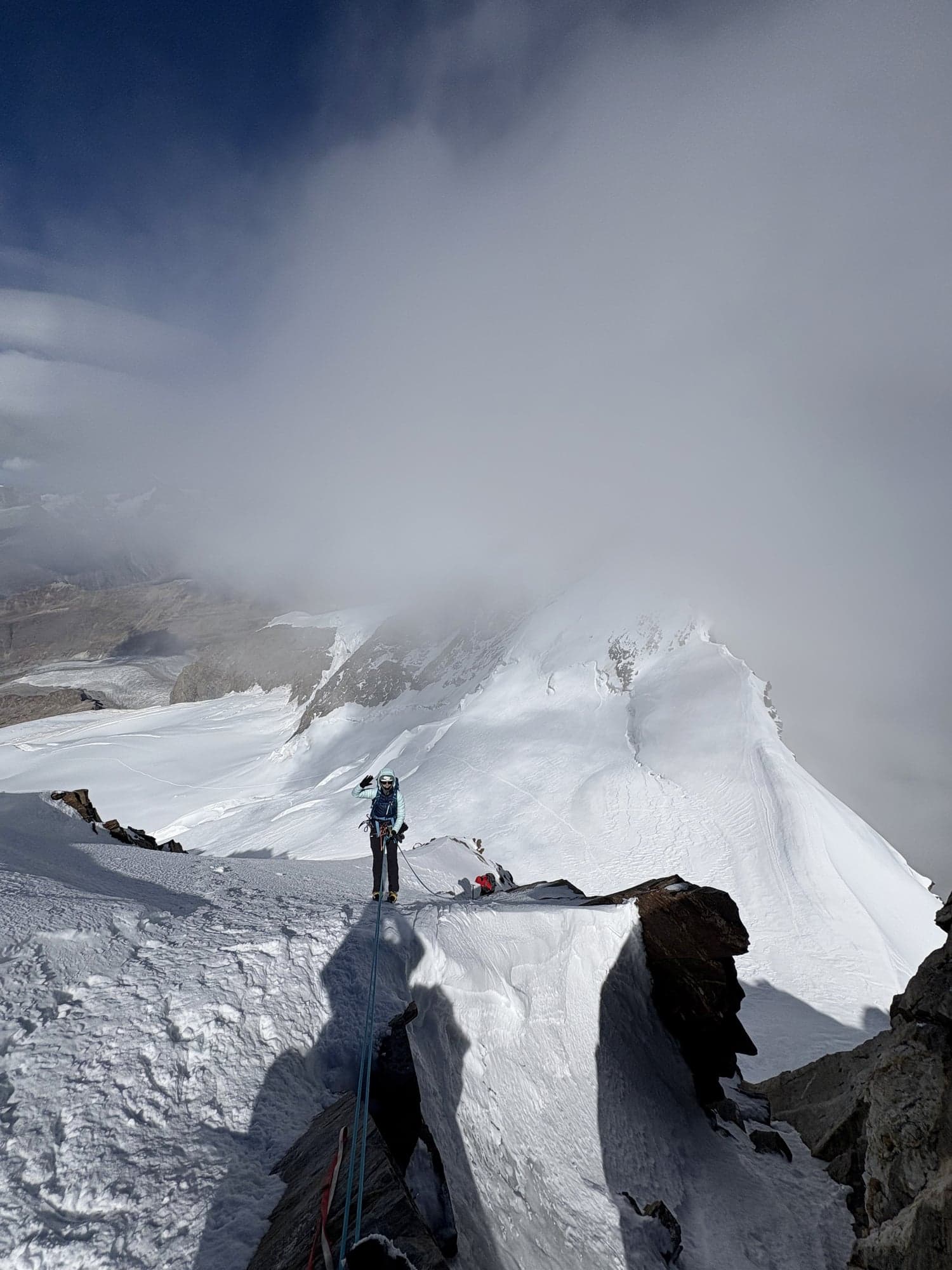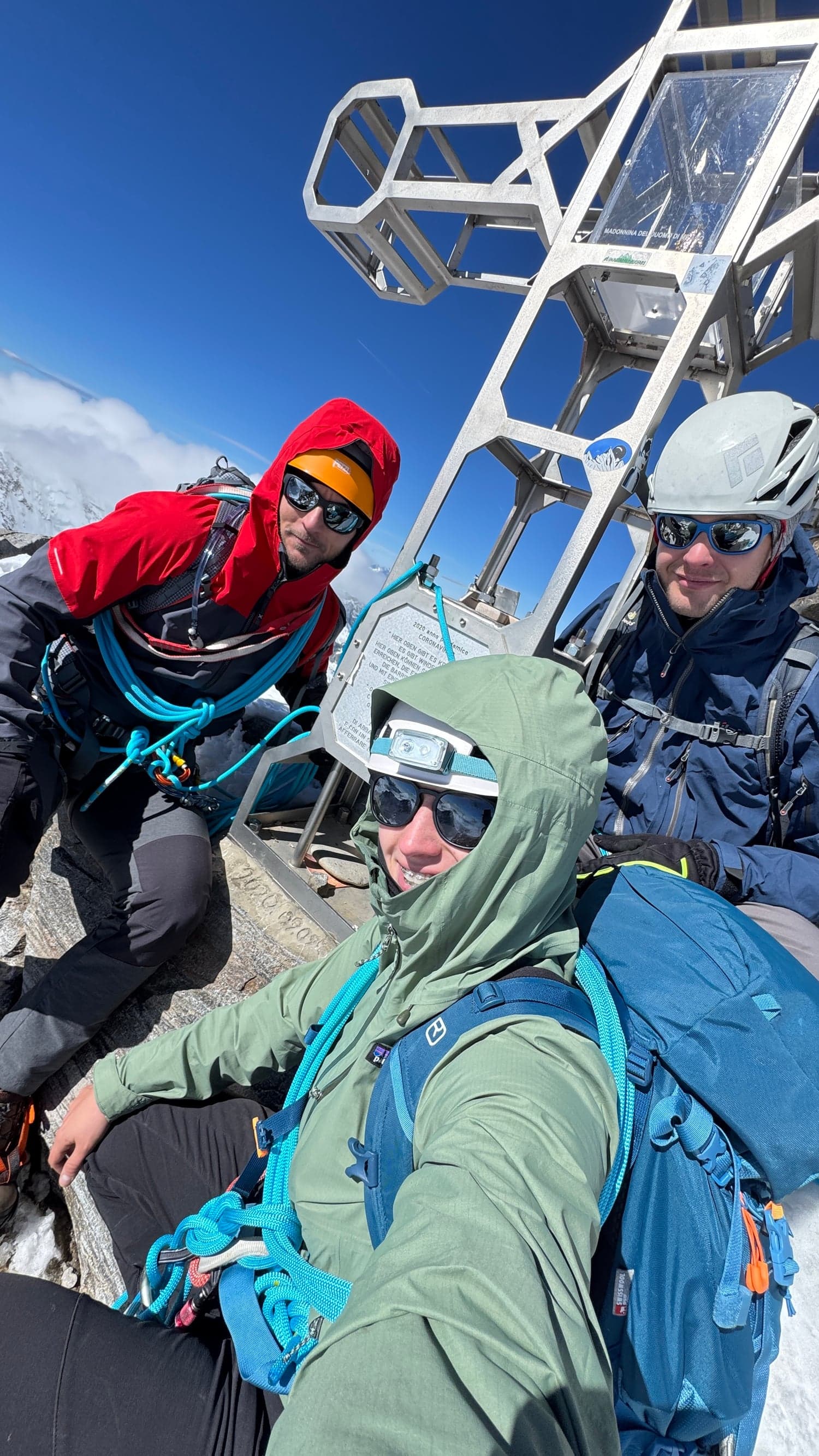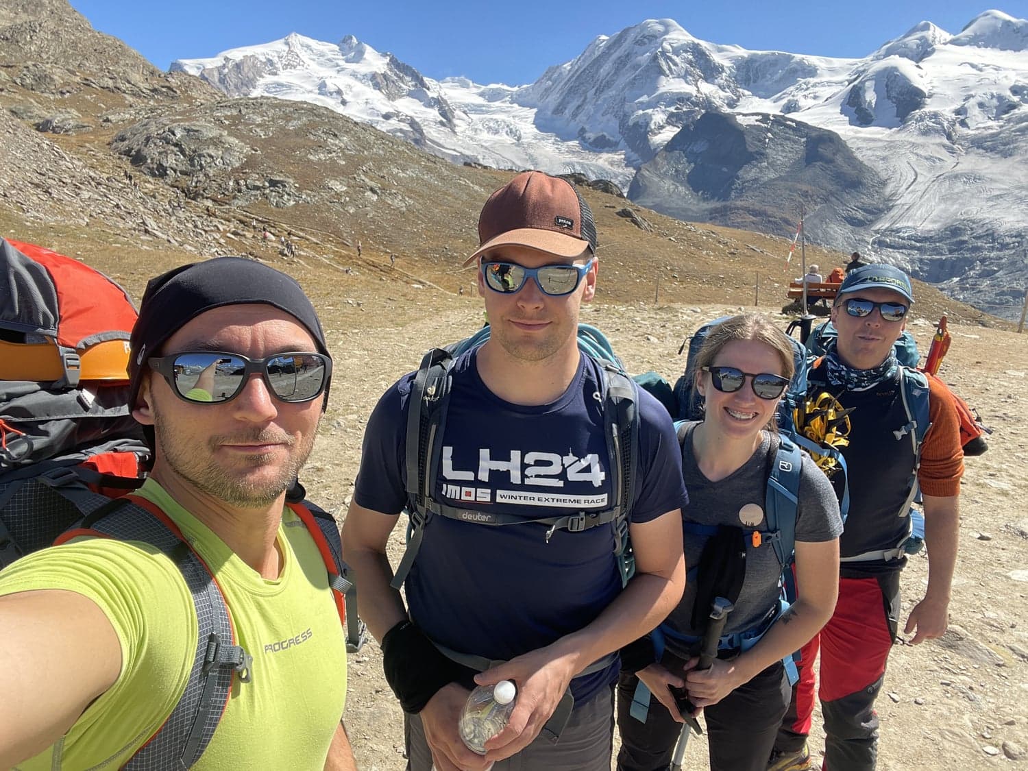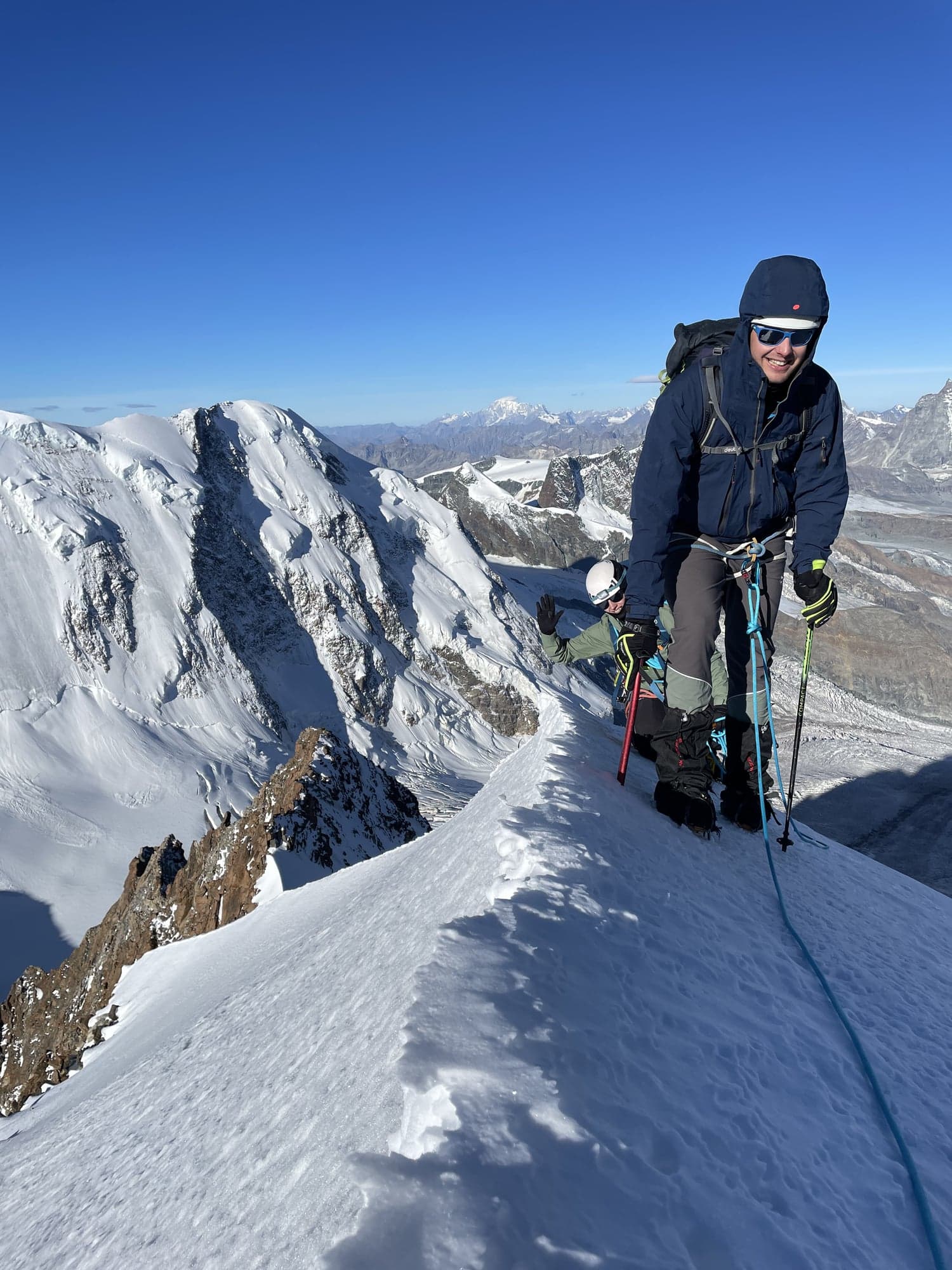 Radek: „Jeden z TOP výstupů. Sice druhá nejvyšší hora Alp, ale Blanc je proti ní sranda. Z vrcholu krásné alpské scenérie. Byly vidět obrovské zaledněné plochy Walliských alp. Nádherné exponované lezení v mixovém terénu. Tím že jsme šli ke konci sezóny, tak hřebínky víc v ledu, než bylo potřeba. Good team vibe a tříchodové menu na večeři!“