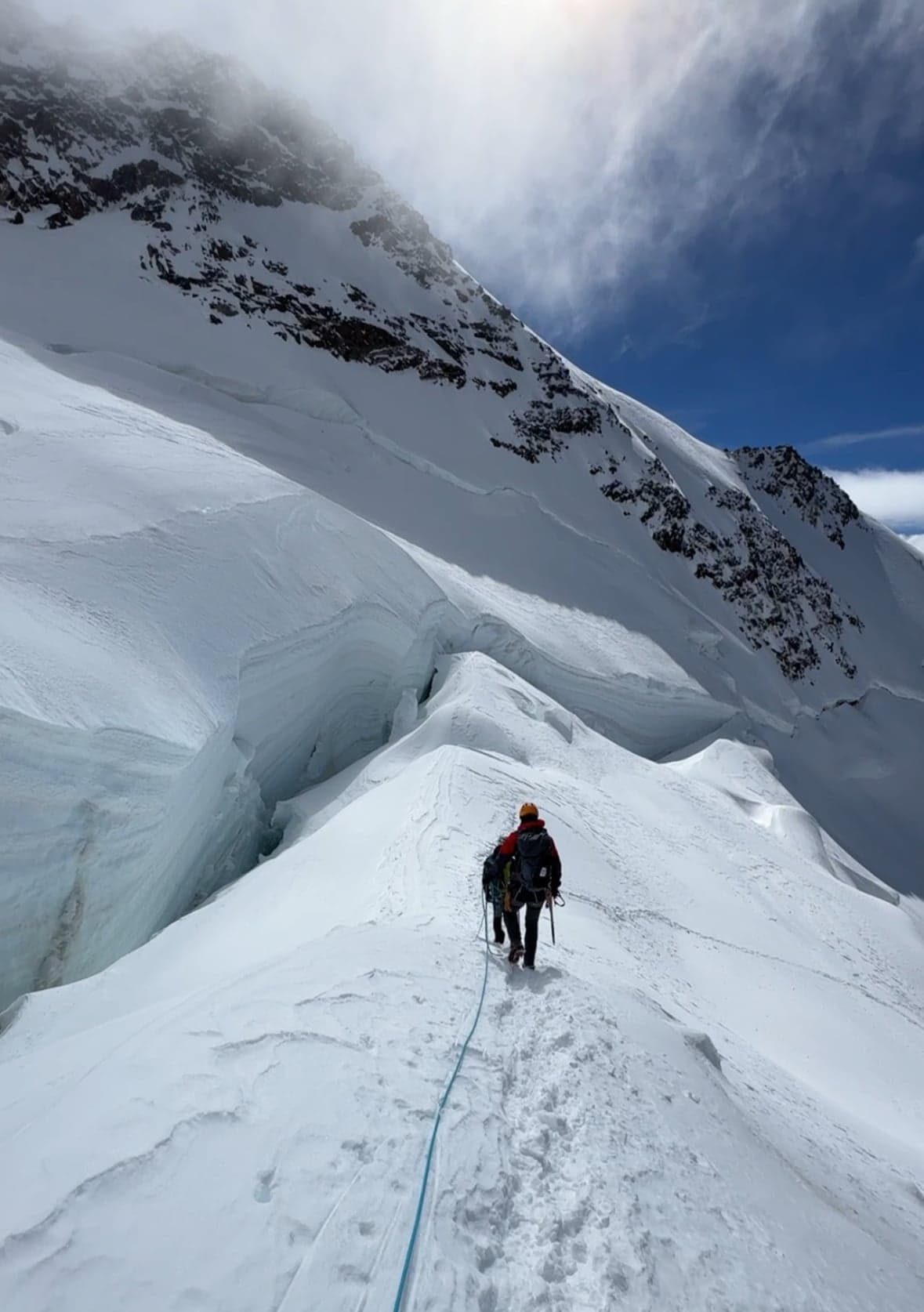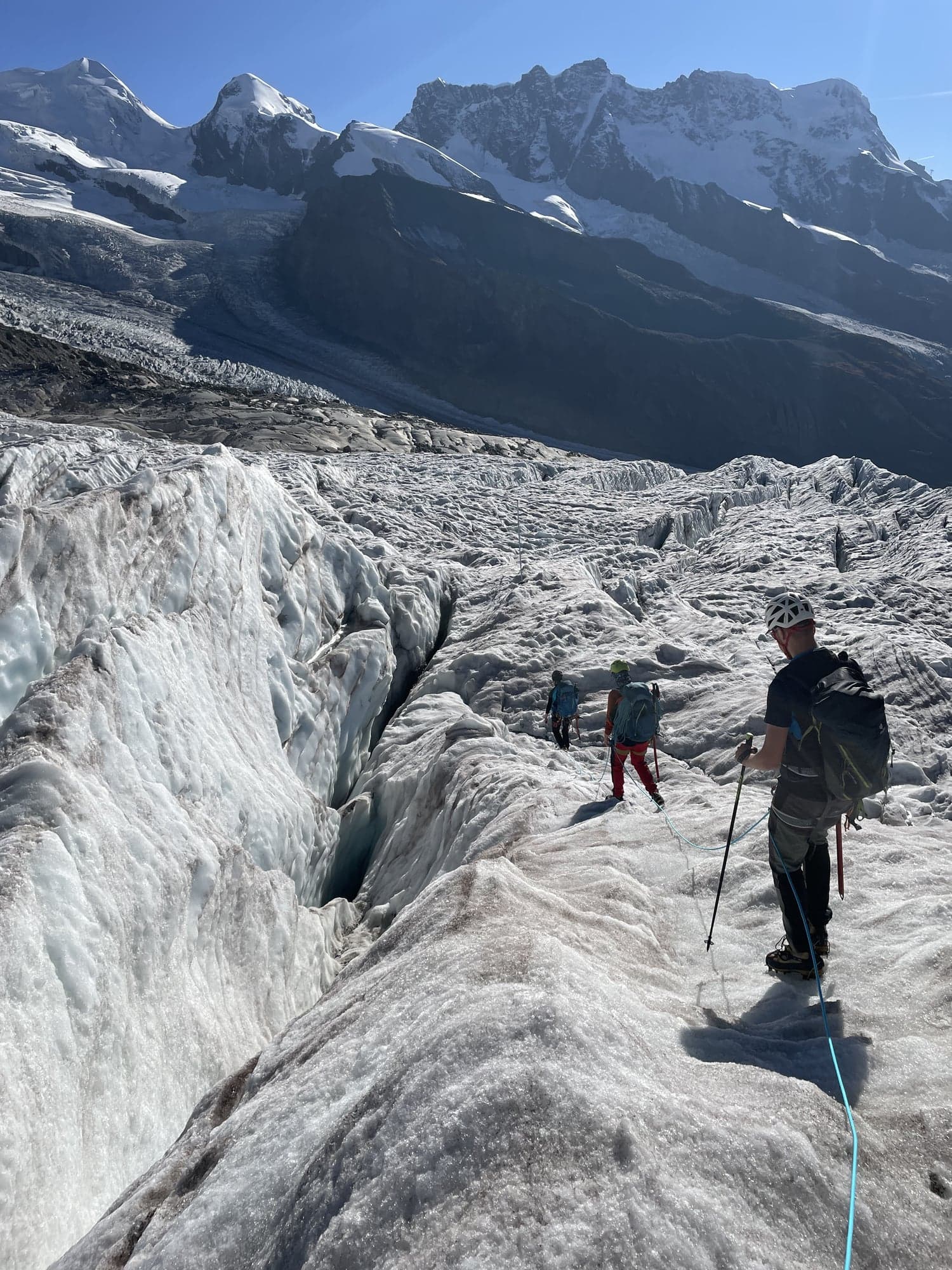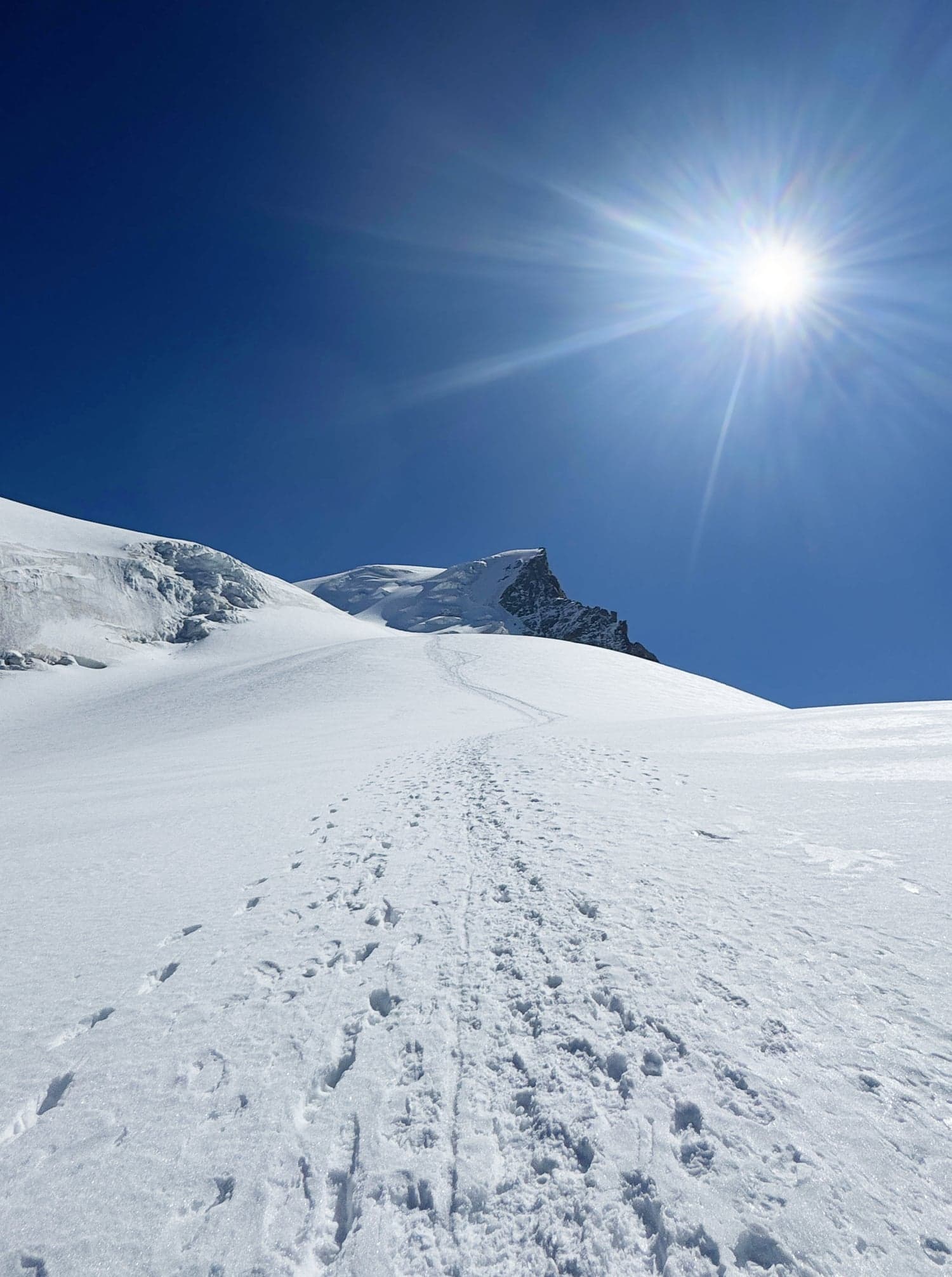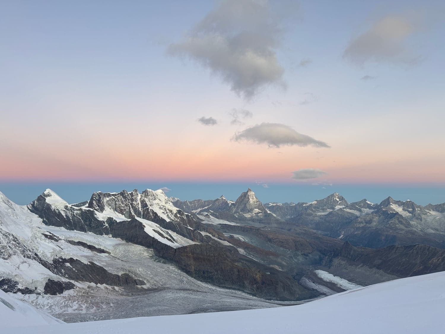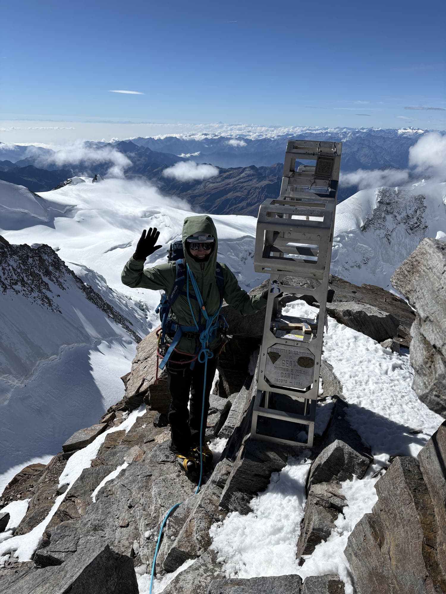 Radek: „Jeden z TOP výstupů. Sice druhá nejvyšší hora Alp, ale Blanc je proti ní sranda. Z vrcholu krásné alpské scenérie. Byly vidět obrovské zaledněné plochy Walliských alp. Nádherné exponované lezení v mixovém terénu. Tím že jsme šli ke konci sezóny, tak hřebínky víc v ledu, než bylo potřeba. Good team vibe a tříchodové menu na večeři!“