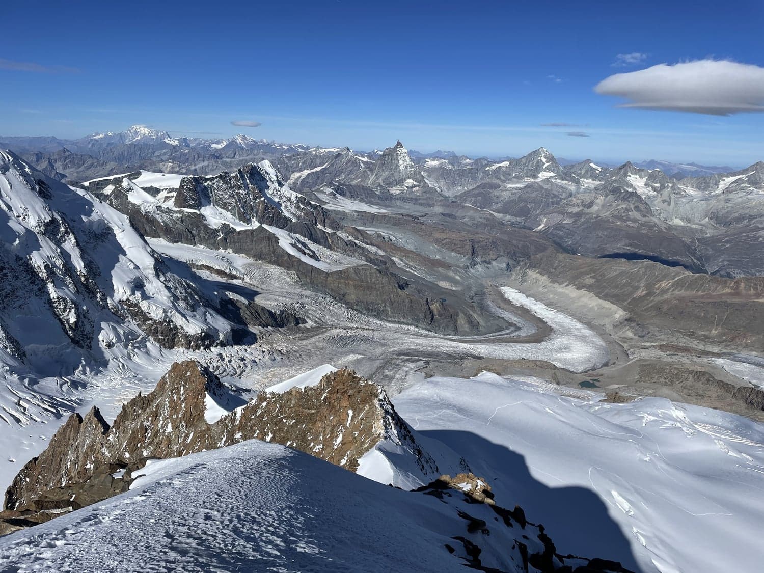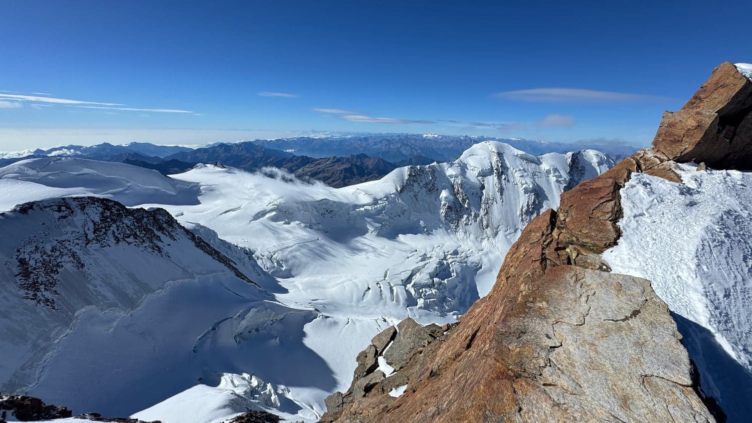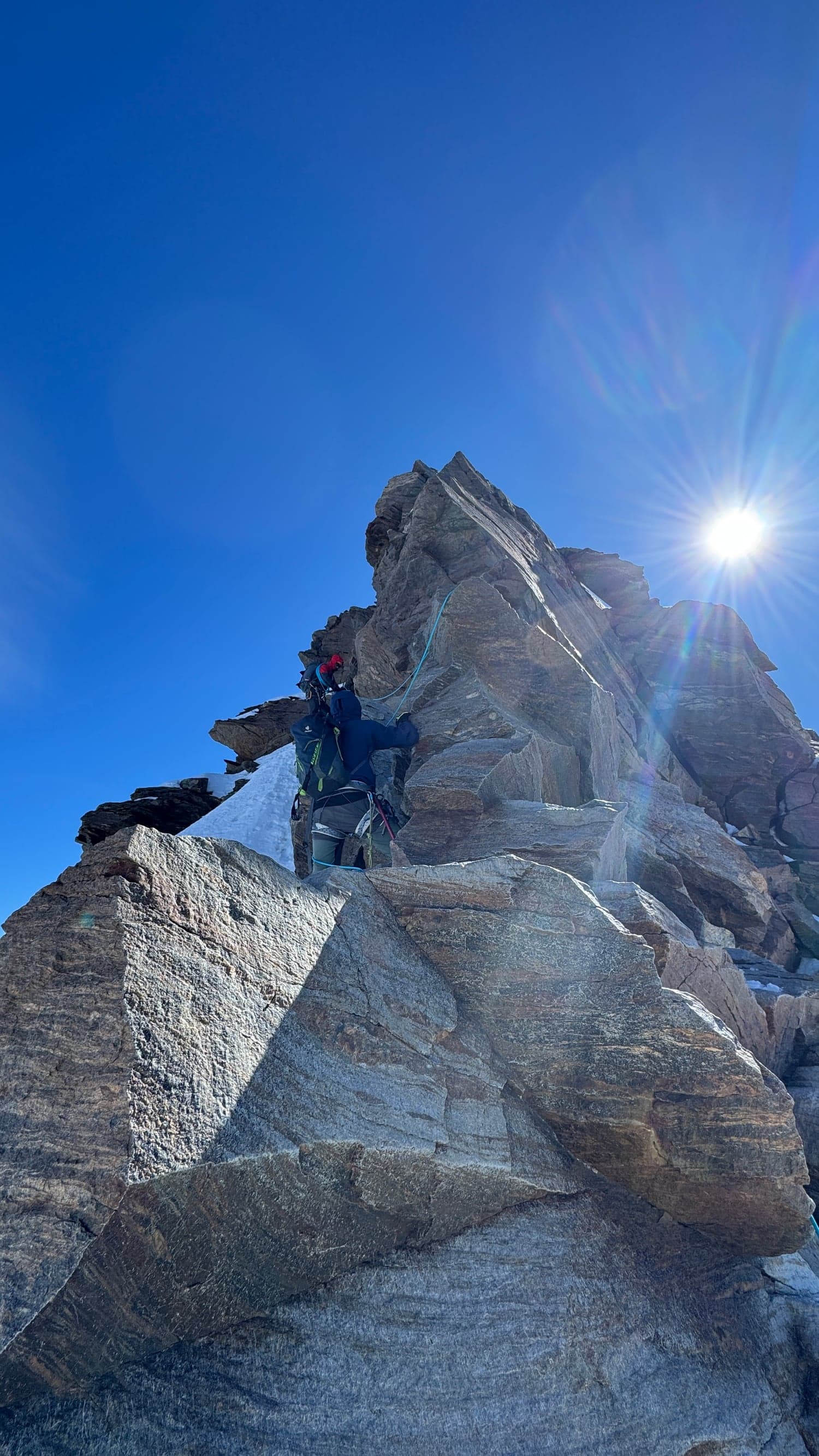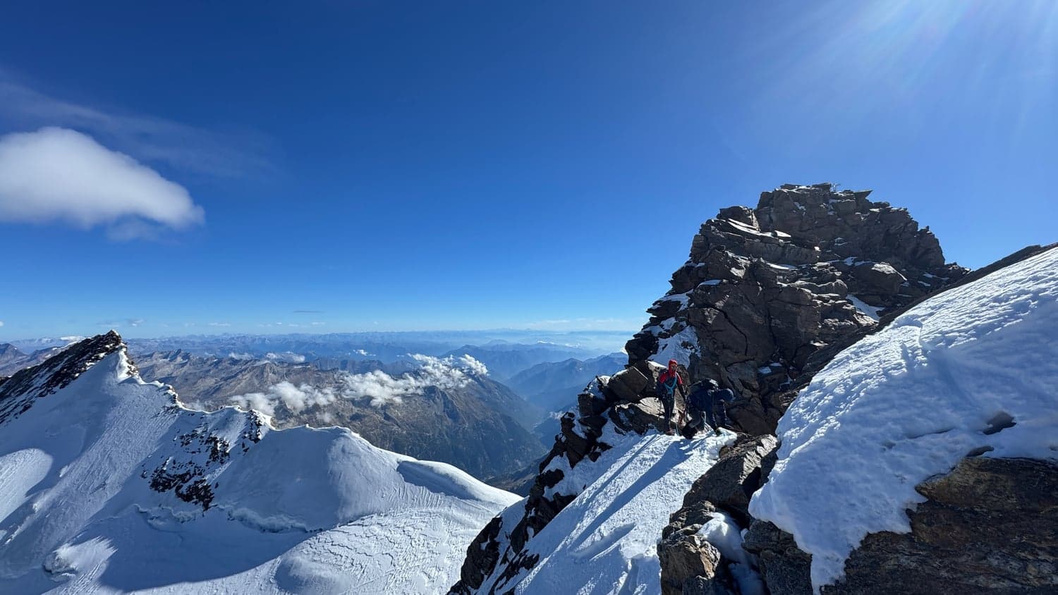 Radek: „Jeden z TOP výstupů. Sice druhá nejvyšší hora Alp, ale Blanc je proti ní sranda. Z vrcholu krásné alpské scenérie. Byly vidět obrovské zaledněné plochy Walliských alp. Nádherné exponované lezení v mixovém terénu. Tím že jsme šli ke konci sezóny, tak hřebínky víc v ledu, než bylo potřeba. Good team vibe a tříchodové menu na večeři!“
