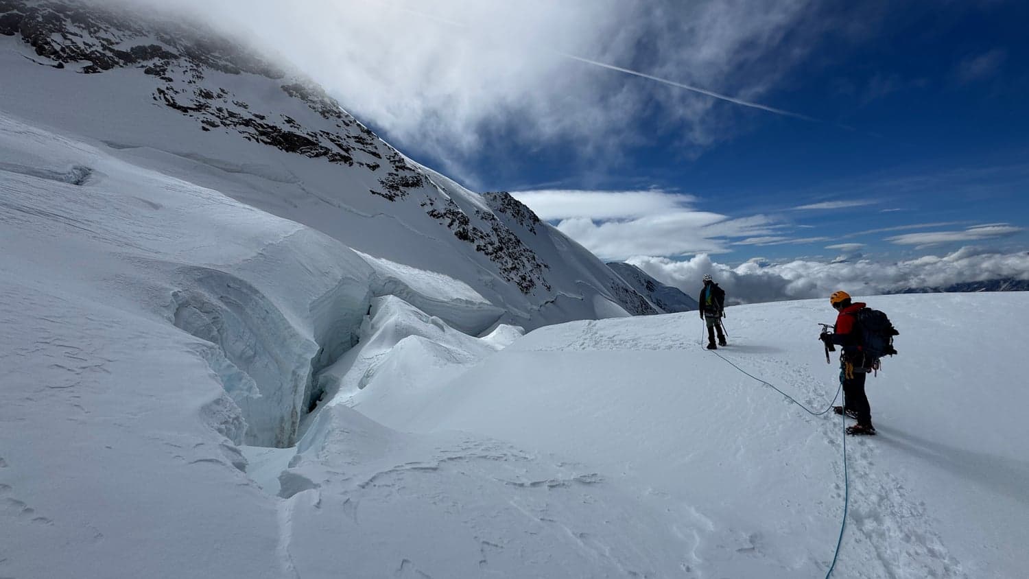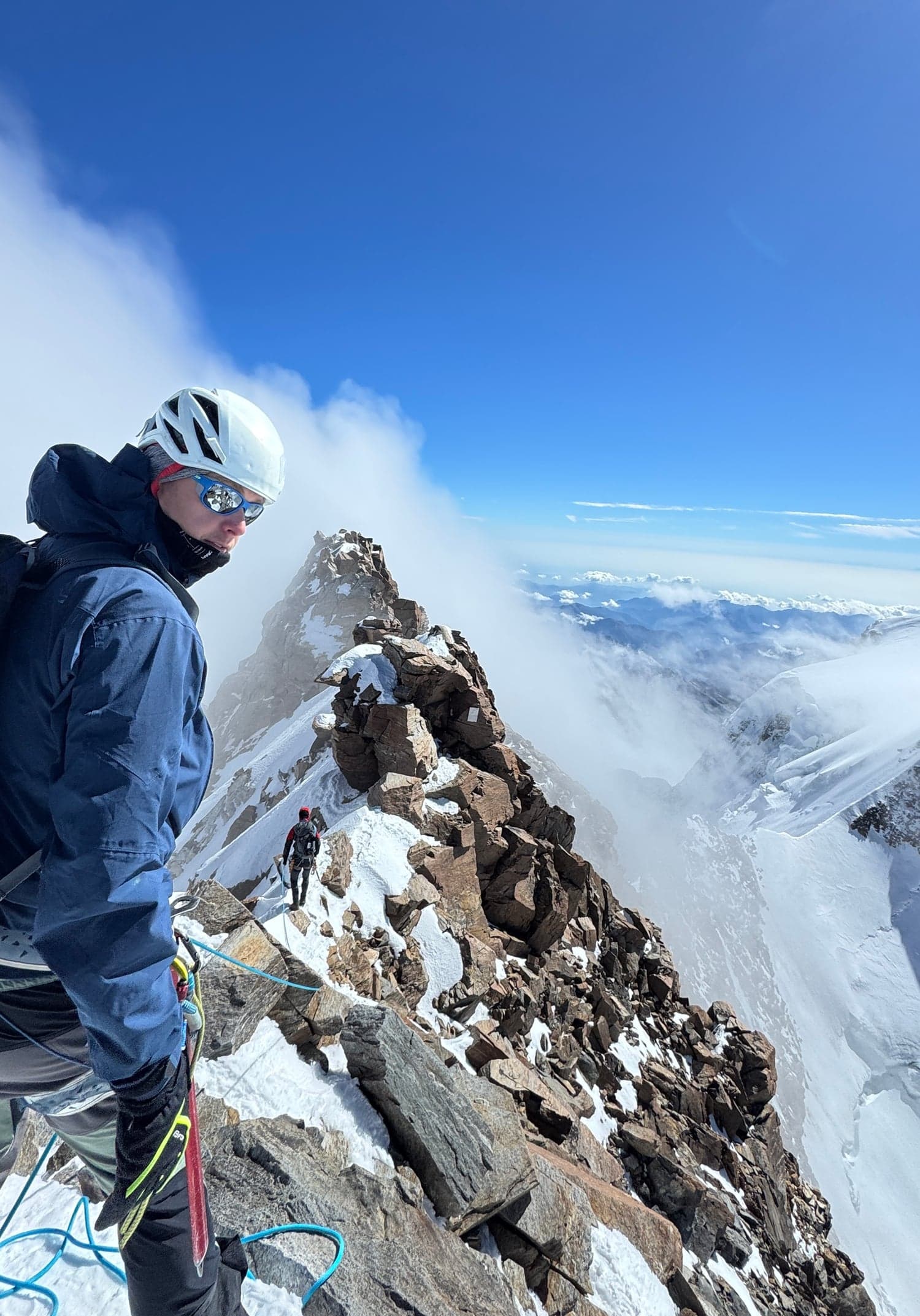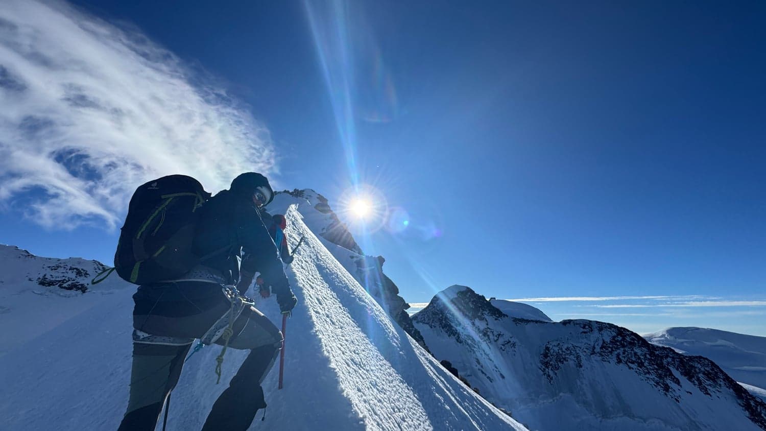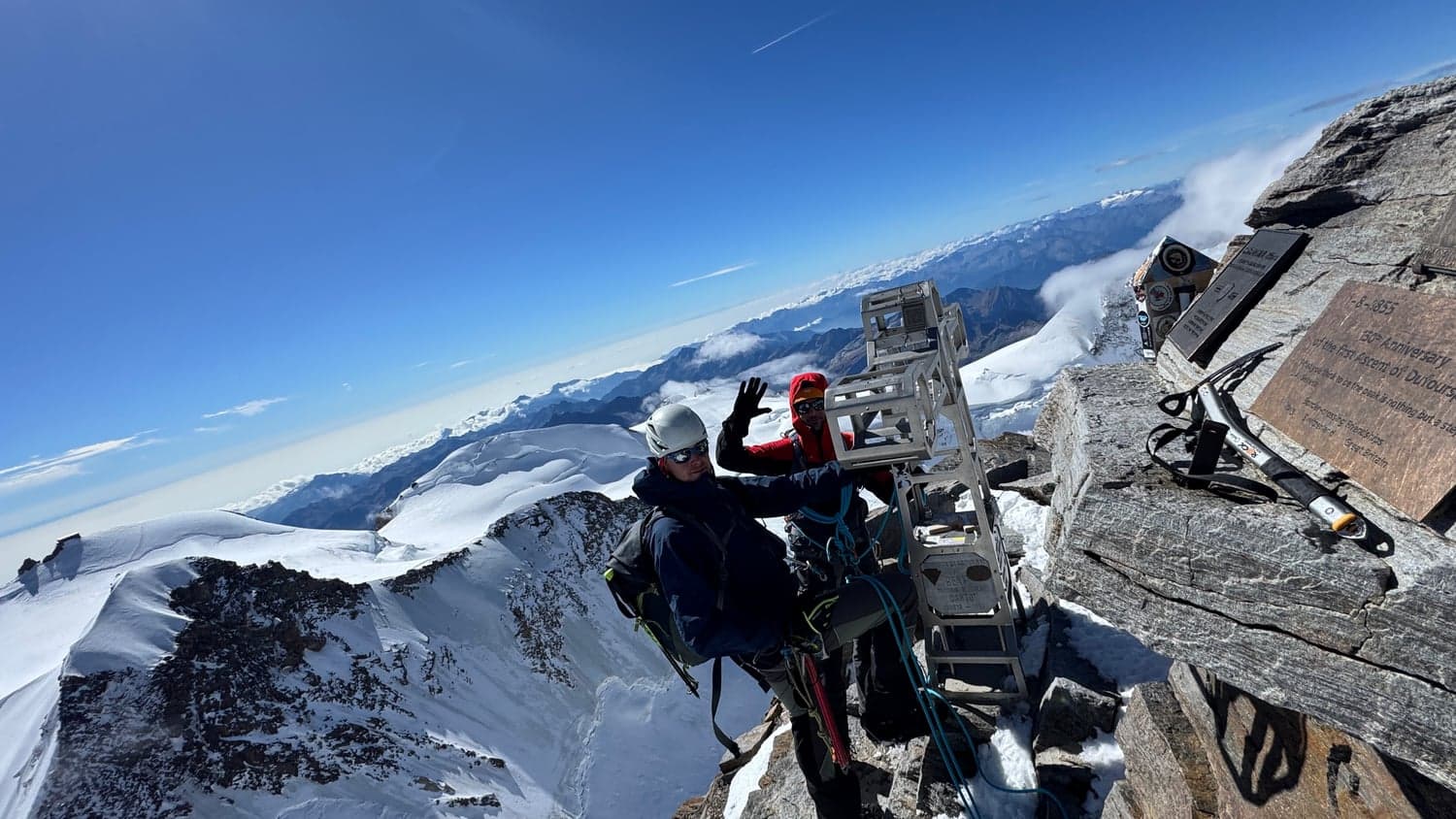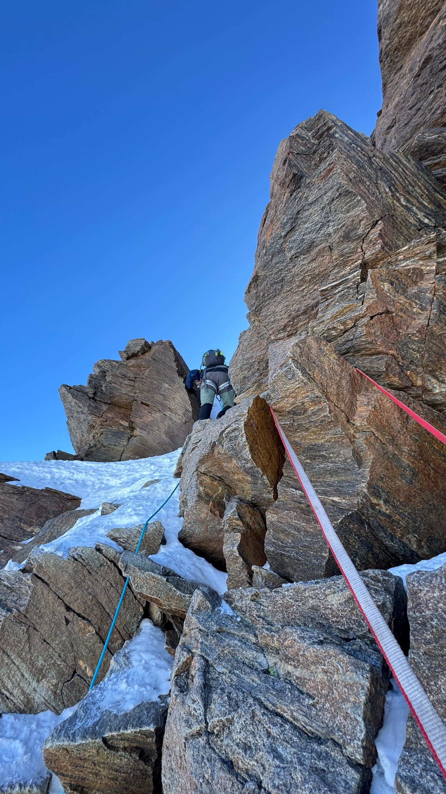 Radek: „Jeden z TOP výstupů. Sice druhá nejvyšší hora Alp, ale Blanc je proti ní sranda. Z vrcholu krásné alpské scenérie. Byly vidět obrovské zaledněné plochy Walliských alp. Nádherné exponované lezení v mixovém terénu. Tím že jsme šli ke konci sezóny, tak hřebínky víc v ledu, než bylo potřeba. Good team vibe a tříchodové menu na večeři!“